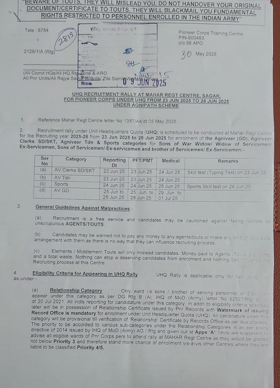 UHQ Recruitment Rally at Mahar Regt. Sagar |